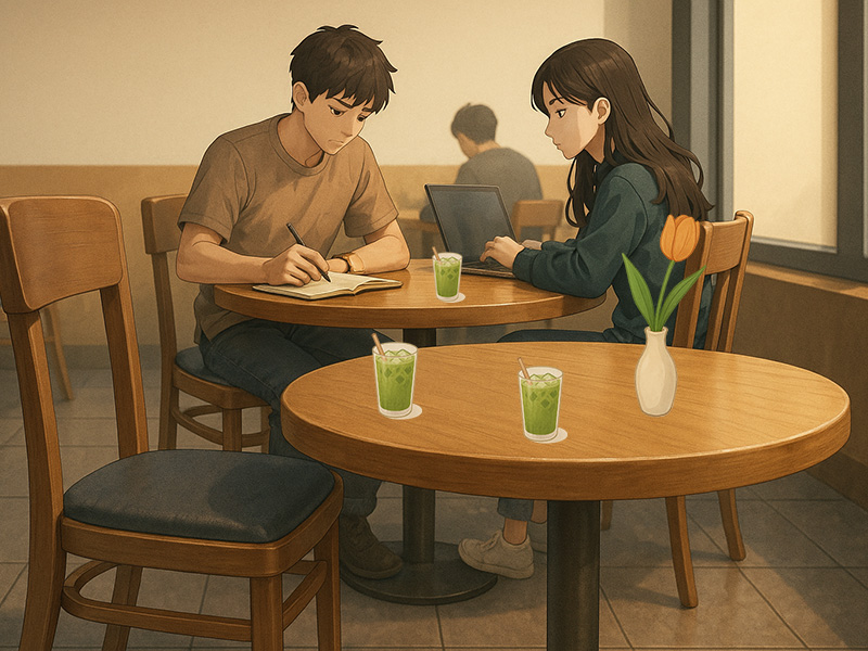In my work, you can see how the drink changes between coffee and matcha.